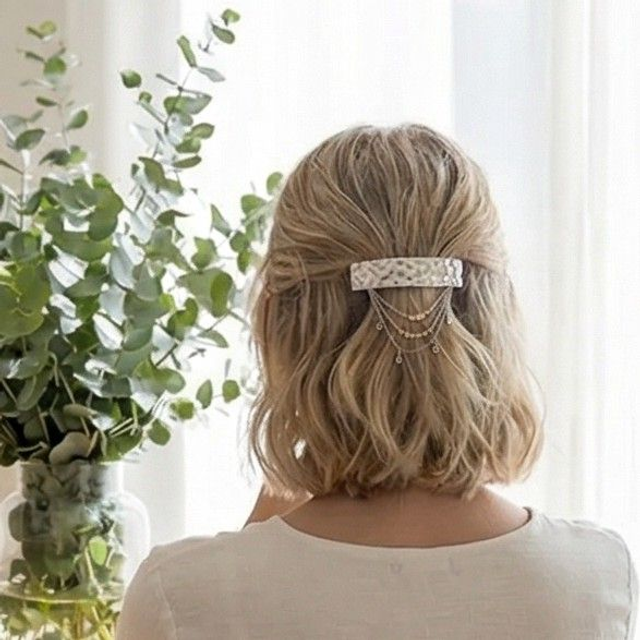 Une barrette délicate aux chainettes dansantes. Elle transforme une coiffure simple en détail précieux.